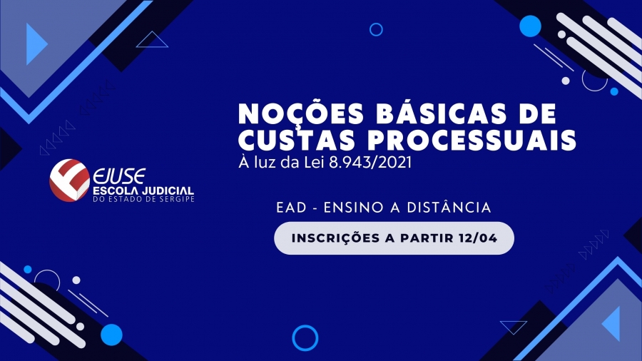 Noções Básicas de Custas Processuais à Luz da Lei 8.943/21, na modalidade a distância. |