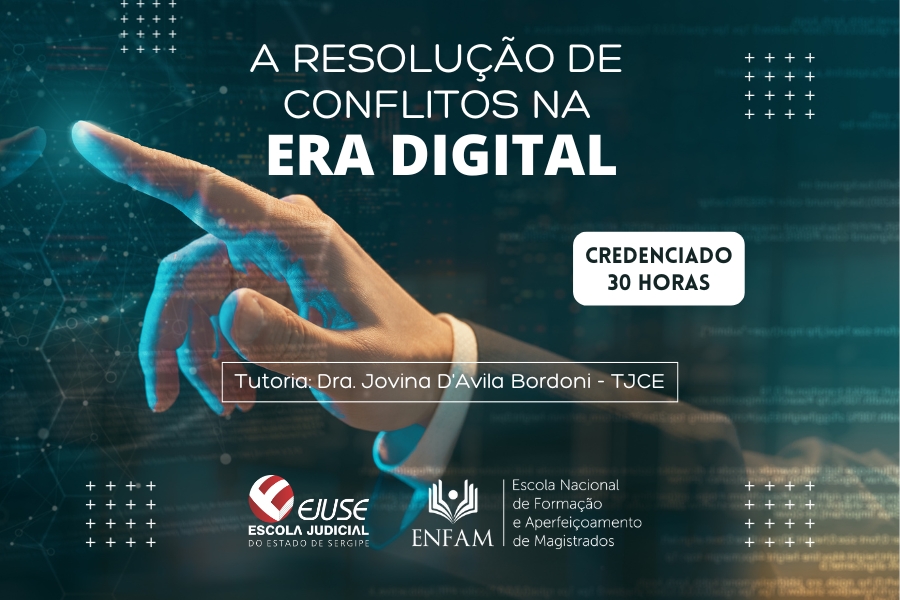 Direcionado para magistradas e magistrados do Poder Judiciário sergipano, a Escola Judicial de Sergipe (Ejuse) informa que estão abertas as inscrições para o curso ‘A Resolução de Conflitos na Era Digital’, compartilhado pela Escola Nacional de Formação e Aperfeiçoamento de Magistrados (Enfam). As inscrições permanecerão abertas até o dia 1º/11 ou enquanto houver vagas e podem ser feitas pelo portal Ejuseweb.