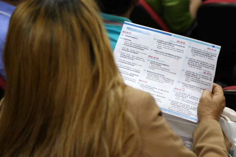 Teve início na tarde de ontem, 05/07, no Fórum Gumersindo Bessa, em Aracaju, o ‘III Curso de Capacitação Conselheiro Tutelar 2017 – ECA: 27 anos em prol da cidadania e proteção integral dos direitos humanos de crianças e adolescentes’. O evento foi destinado, incialmente, para profissionais de 21 municípios sergipanos que ainda não tinham sido contemplados nas edições anteriores, mas acabou atraindo o interesse de Conselheiros Tutelares de Maceió (AL), Itapicuru e Paripiranga (BA). As aulas continuam até o próximo dia 31.