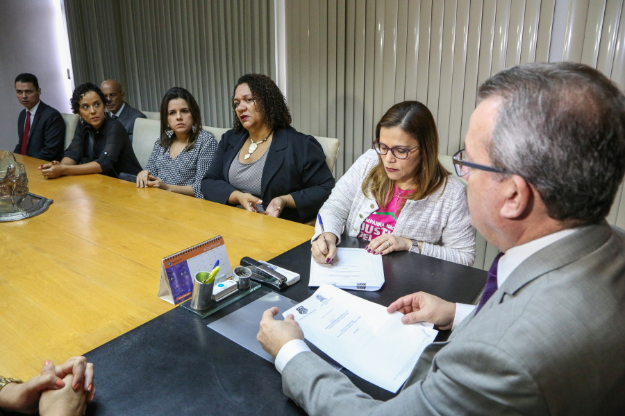 Outra atividade da VIII Semana da Justiça pela Paz em Casa foi a assinatura de um Termo de Cooperação com a Secretaria de Segurança Pública (SSP) para capacitar policiais que farão o atendimento humanizado a mulheres vítimas de violência, especialmente no interior sergipano, nos municípios onde não há delegacias especializadas. “É de suma importância quando os órgãos se unem em prol do enfrentamento à violência”, destacou Katarina Feitoza, Delegada Geral da SSP.