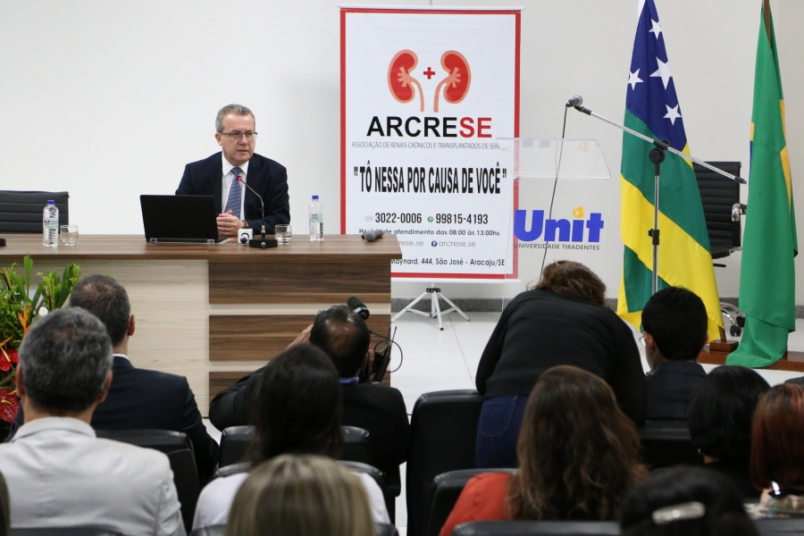 Ao iniciar a palestra, o Des. Cezário Siqueira Neto falou da necessidade de união de forças sobre a questão dos pacientes renais. “É uma realidade tocante. É preciso que todos os atores do Estado, Judiciário, Executivo e Legislativo se unam, participem e vejam a realidade dessas pessoas que sofrem com a doença renal crônica. É necessário que seja reativado o serviço de transplantes em Sergipe; o sistema de distribuição de medicamentos deve ser aprimorado; e o Judiciário pode contribuir com isso por meio das suas varas especializadas, prolatando decisões que propiciem a dignidade da pessoa humana e o exercício pleno da cidadania” explicou o presidente do TJSE.