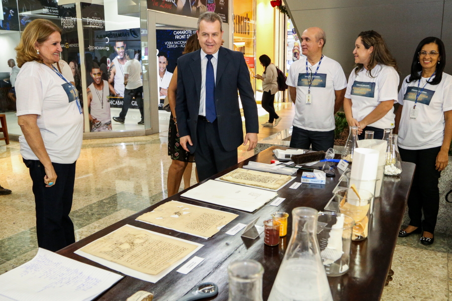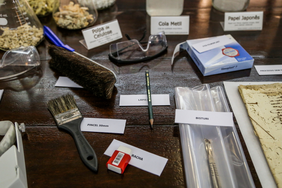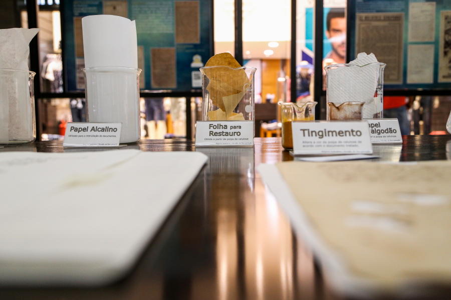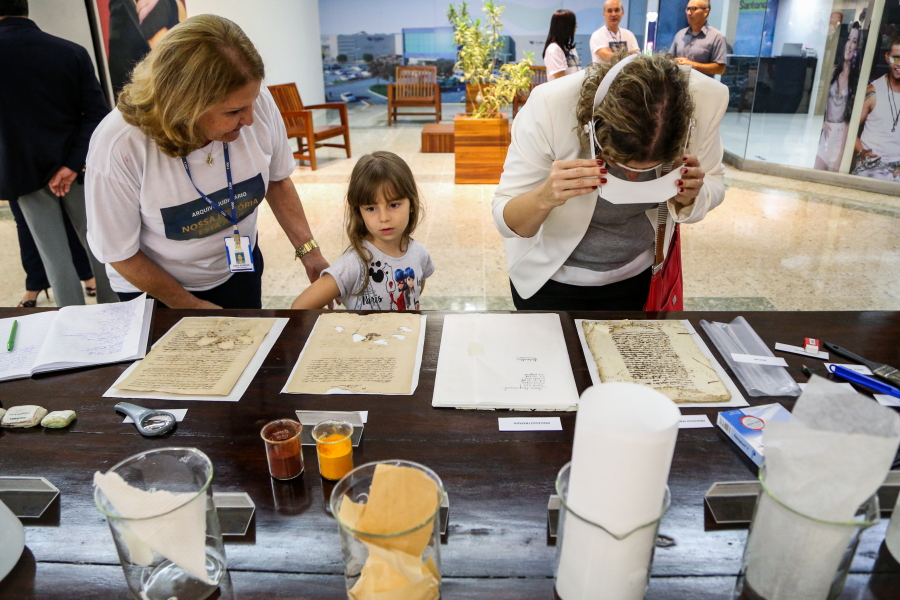 O Arquivo Judiciário levou para a exposição materiais que são utilizados para restauração de documentos antigos, como polpa de celulose, papel japonês e goma arábica. Os visitantes também puderam levar como lembrança um cartão da exposição, assinando o próprio nome com uma caneta de pena. Para Pedro Miguel Matos, de 7 anos, foi uma novidade. “Pessoalmente nunca tinha visto essa caneta, só no meu livro de História”, disse Pedro, acrescentando que já estudou sobre a escravidão, mas nunca tinha visto documentos.