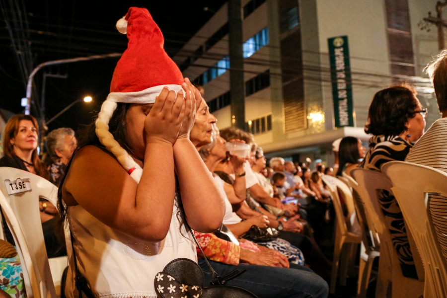 Muita gente não só acompanhou as canções, mas se emocionou muito também. Foi o caso de Rosineide Alves, que já cantou em coral e ao ver na televisão a notícia sobre o evento, logo se interessou. “É importante não deixarmos morrer o Natal. Gosto muito, especialmente quando tem coral. Queria estar lá”, confessou Rosineide, que foi ao evento com a filha Carolina e o esposo Givaldo Santos. “É uma festa linda e importante para reunir a família”, disse Givaldo.