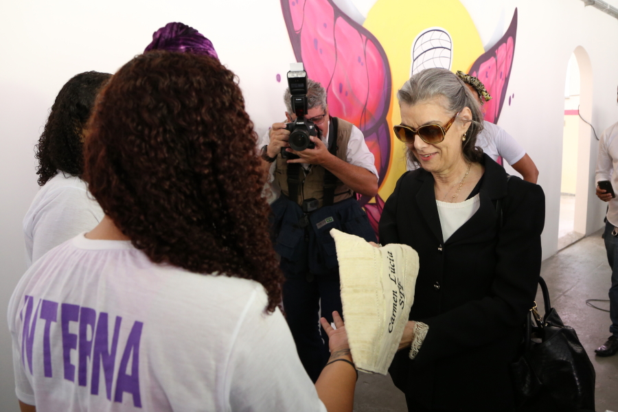 “Nós acreditamos que todo mundo pode errar na vida, mas que todo ser humano é maior do que o seu erro. Depositamos em vocês a esperança de que a vida se constrói todo dia”. Foi com essa frase que a Ministra Cármen Lúcia Antunes Rocha, Presidente do Supremo Tribunal Federal (STF) e do Conselho Nacional de Justiça (CNJ), agradeceu ao poema que a interna do Presídio Feminino (Prefem), Clisdecy Dinorah, escreveu para recebê-la durante a visita realizada nesta terça-feira (16/01). O texto da interna dizia: “a sua visita nos trouxe a esperança de um futuro promissor. Excelência nos ajude a cuidar da nossa história, transformando o nosso caos em glória”.