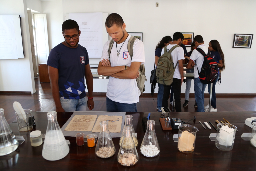 Aproximadamente 20 alunos do 3º Ano do ensino médio do Colégio Atheneu Sergipense, participaram da programação de hoje que contou com a possibilidade de conhecer apontamentos de diversas épocas da história de Sergipe e o trabalho de restauro desses documentos, bem como as ferramentas e os materiais utilizados.