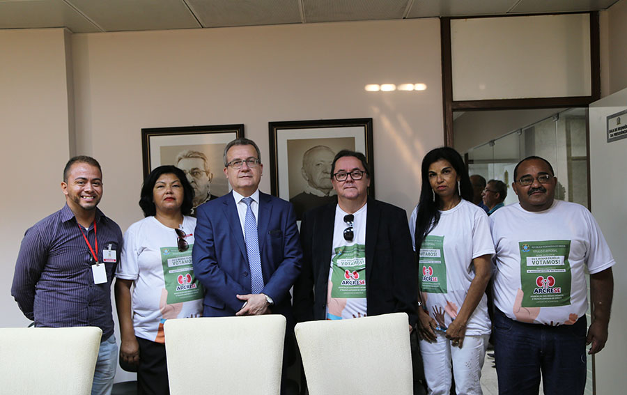 O Presidente do Tribunal de Justiça de Sergipe, Desembargador Cezário Siqueira Neto, e magistrados do Juizado e Varas da Fazenda Pública da Comarca de Aracaju receberam, na tarde de ontem, 19/02, a diretoria da Associação dos Renais Crônicos e Transplantados de Sergipe (Arcrese). Conforme Lúcio Alves, Presidente da Arcrese, o objetivo da reunião foi apresentar aos Juízes os problemas enfrentados pelos pacientes e que acabam sendo judicializados.