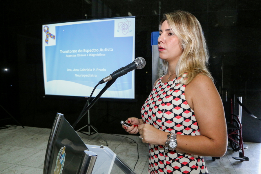 A neuropediatra Ana Gabriela Passos do Prado discorreu sobre o TEA – Transtorno do Espectro Autista, aspectos clínicos e diagnósticos e a visão do neuropediatra sobre o tema. Segundo ela, o TEA é um transtorno do neurodesenvolvimento caracterizado por déficits na comunicação social e pela presença de comportamentos e interesses restritos e repetitivos, não tem cura e não pode ser considerado uma doença.