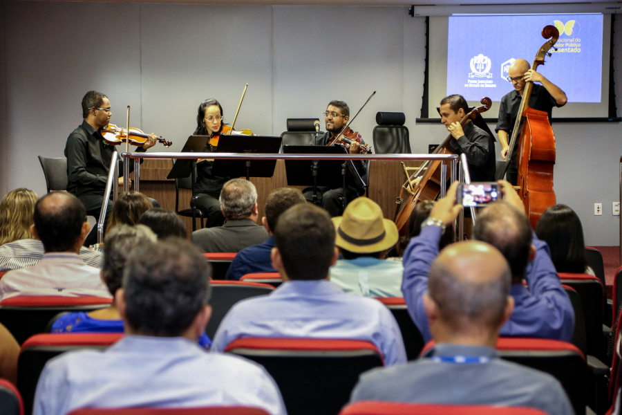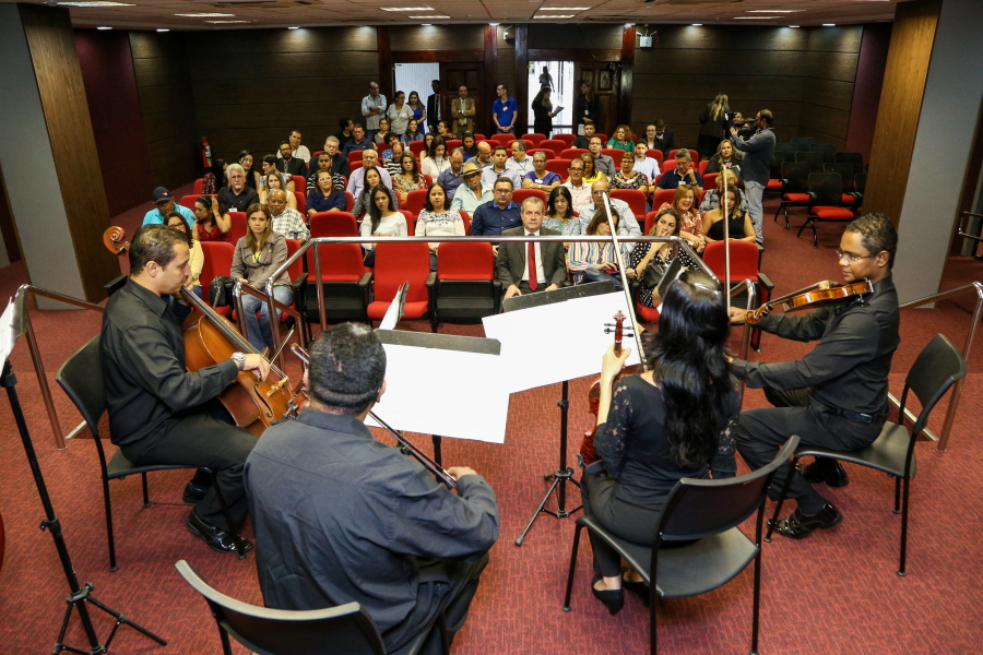 A cerimônia foi aberta com a apresentação do Quinteto de Cordas da Orquestra Sinfônica de Sergipe (ORRSE). “Um dos pilares da gestão é a valorização de servidores e magistrados em vários aspectos, a exemplo da humanização, melhoria da qualidade de vida e saúde, como tambem a atenção aos aposentados. Estamos conseguindo, com muito esforço, a regularização da data de pagamentos dos proventos dentro do mês. É gratificante poder homenagear os servidores aposentados e poder reencontrá-los”, registrou o Presidente do TJSE, Des. Cezário Siqueira Neto.