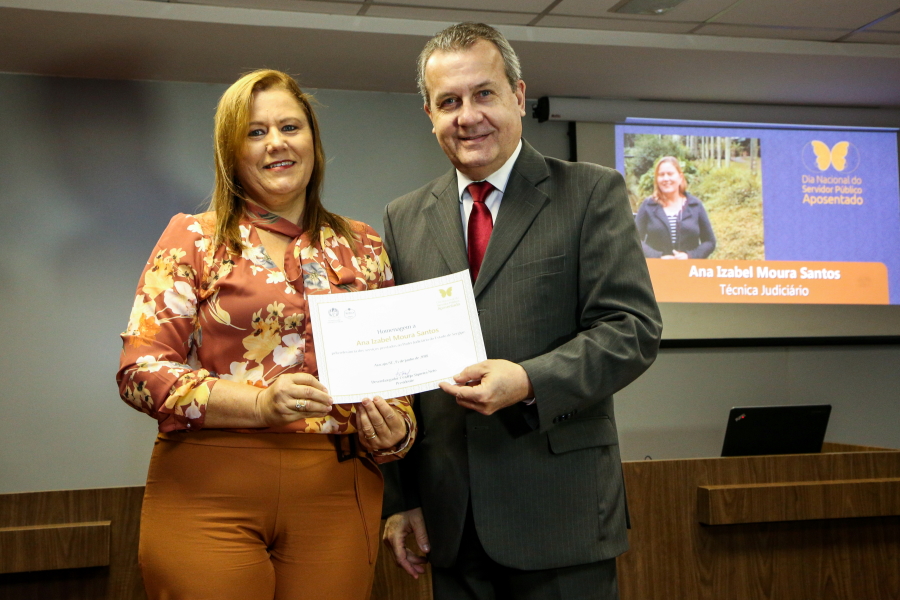 A Analista Judiciária Denise Rambo, que falou em nome dos homenageados, afirmou que a aposentadoria tem sido uma das melhores fases da sua vida. “Só tenho a agradecer a atual gestão, percebo que o Des. Cezário tem uma atenção e um carinho especial com os aposentados. Estou numa fase maravilhosa, com tempo para cuidar do corpo, da mente e dos familiares. É apenas um novo ciclo, mas pretendo continuar a servir e aproveitar a vida”, explicou a servidora.
