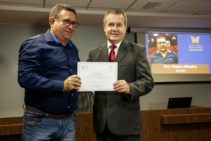 O Presidente do Tribunal de Justiça de Sergipe, Des. Cezário Siqueira Neto, homenageou em cerimônia realizada sexta-feira, 15/06, no Fórum Gumersindo Bessa, trinta e sete servidores e magistrados que se aposentaram desde janeiro de 2017 pelos relevantes serviços prestados ao Judiciário. A solenidade marca a passagem do Dia Nacional do Servidor Público Aposentado e os homenageados da Justiça estadual sergipana receberam Diplomas de agradecimento.