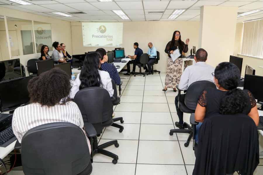 Quatorze contadores contratados para acelerar os cálculos para o pagamento de precatórios iniciaram, nesta quinta-feira, 19/07, treinamento baseado no Manual de Cálculos elaborado pelo Departamento de Precatórios (Deprec) do TJSE. Os bacharéis em Ciências Contábeis foram selecionados por meio de um Processo Seletivo Simplificado (PSS) e atuarão no Judiciário sergipano por até 05 (cinco) meses, podendo ser prorrogado por até igual período.
