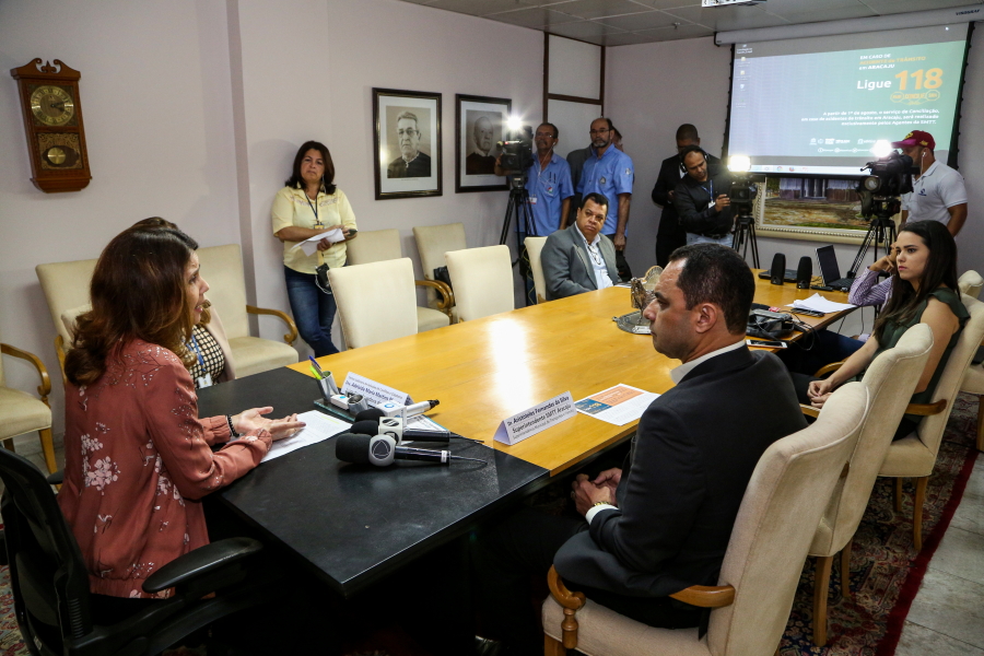 Foi realizada na manhã desta quarta-feira, 25/07, na sala de reunião da Presidência do Tribunal de Justiça de Sergipe (TJSE), entrevista coletiva para anúncio oficial de que, a partir de 1º de agosto, o serviço de conciliação nos acidentes de trânsito em Aracaju será realizado exclusivamente pelos agentes da SMTT (Superintendência Municipal de Transportes e Trânsito), com chamado ao telefone 118.