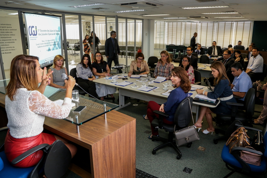 Aconteceu na manhã desta segunda-feira, 13/08, o I Encontro dos Juízes do Sistema de Juizados Especiais. O evento, realizado no auditório da Escola Judicial de Sergipe (Ejuse), reuniu mais de 20 magistrados e foi aberto pela Corregedora-Geral de Justiça, Desembargadora Iolanda Guimarães, também Presidente do Conselho de Coordenação dos Juizados Especiais do Tribunal de Justiça de Sergipe (TJSE).