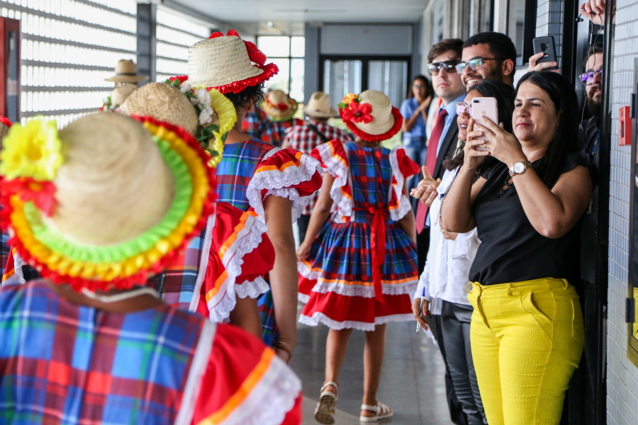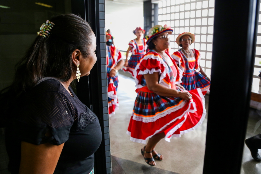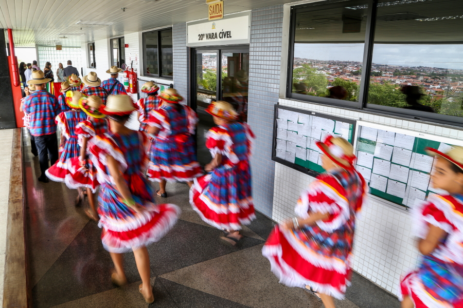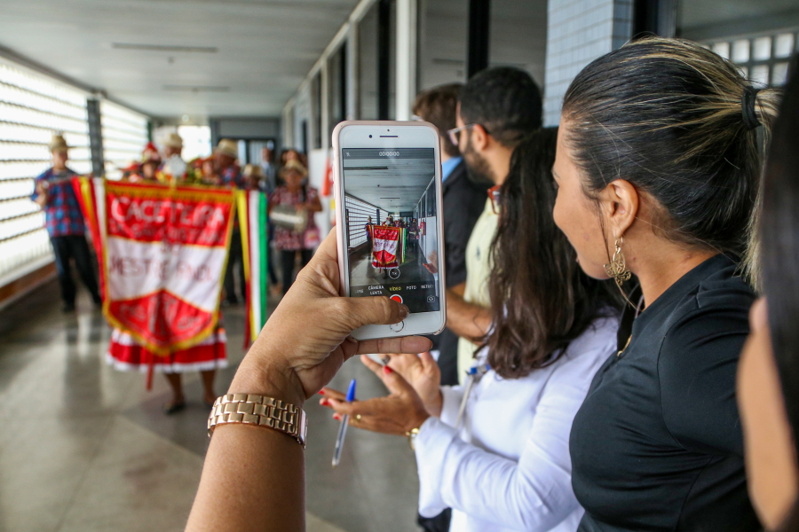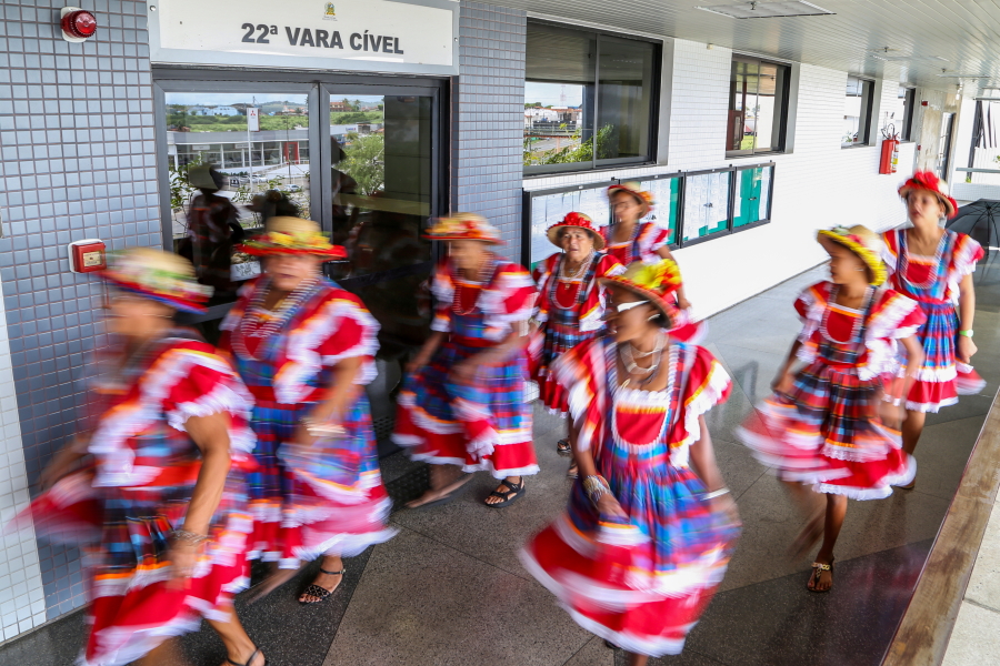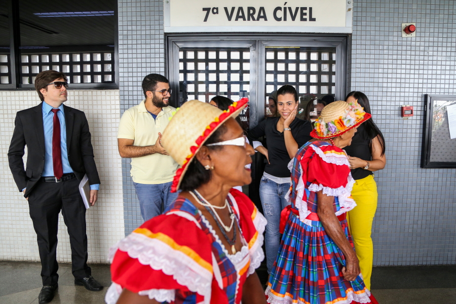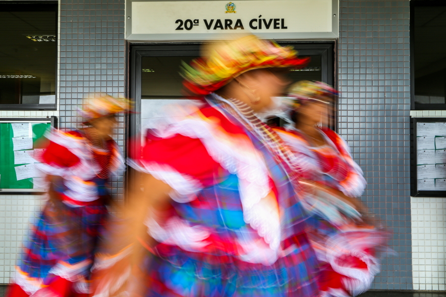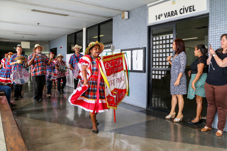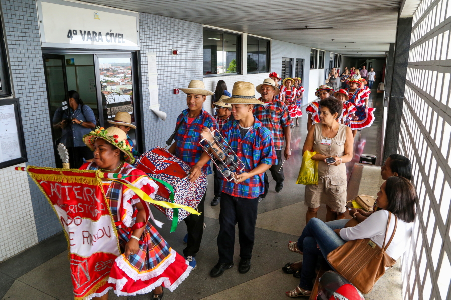 O cortejo folclórico percorreu os corredores do maior fórum do Estado. A servidora Cláudia Lima, da 7ª Vara Cível, deu uma pequena pausa no trabalho para observar a passagem. “É muito bom que o TJSE valorize o folclore sergipano. Nós vimos que tem pessoas mais idosas, é importante tanto para valorizar quanto para que a gente conheça mais da cultura sergipana”.