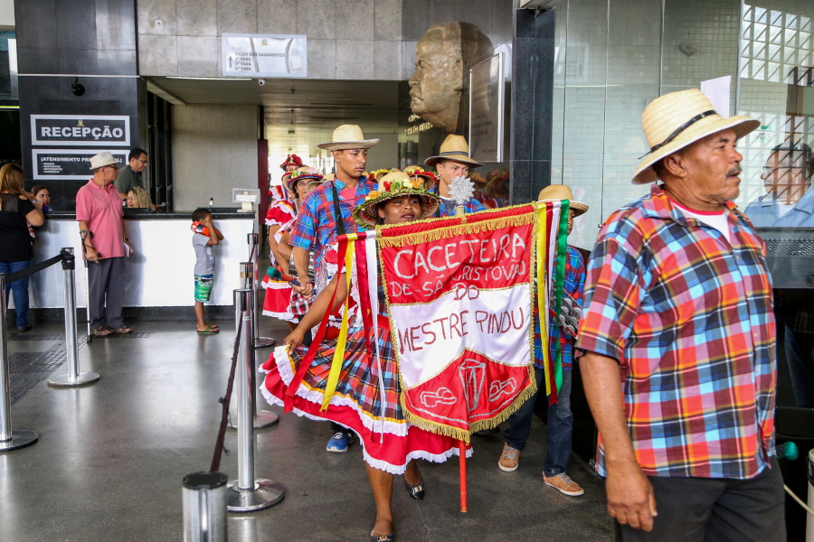 Nesta quarta-feira, dia 22, o Fórum Gumersindo Bessa, em Aracaju, foi movimentado pelo cortejo do grupo Caceteira do Mestre Rindu. O evento faz parte da programação do Dia do Folclore, comemorado nesta data. Em homenagem, uma série de outras atividades estão sendo desenvolvidas ao longo da semana.