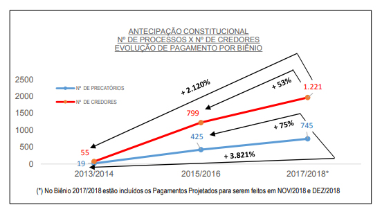 Em relação a números do período 2013-2014, quando o Departamento de Precatórios (Deprec) foi criado, o montante pago desde 2017 já ultrapassa 2.000%, um incremento que vai ao encontro do anseio dos credores de receberem, o quanto antes, o que lhes é devido por sentença judicial definitiva.