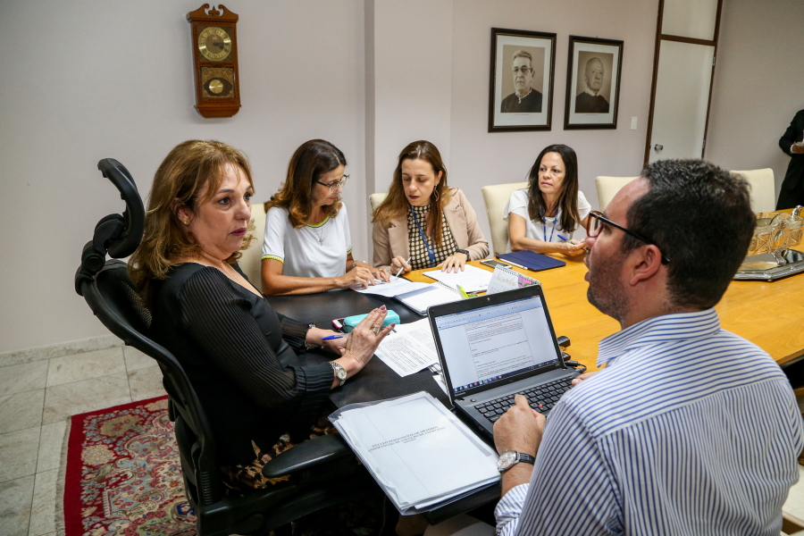 A reunião contou também com a participação das servidoras do Cejusc, Carla Maria Franco Lameira Vitale e Maristela Moura Gonçalves; e do secretário do núcleo Thyago Avelino Santana dos Santos.
