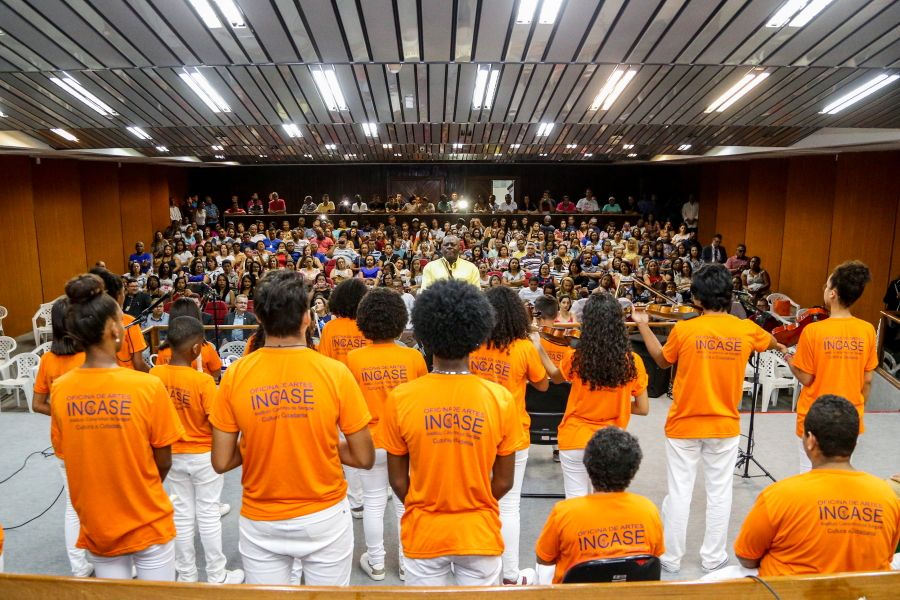 O evento foi aberto com apresentação de 16 crianças do Coral Canarinhos de Aracaju, sob a regência do maestro Carlos Magno. As vozes graciosas e suaves das crianças trouxeram a mensagem de gratidão do TJSE para os funcionários terceirizados, mas a melhor parte da interpretação foi quando a plateia se juntou ao coral, cantando juntos.