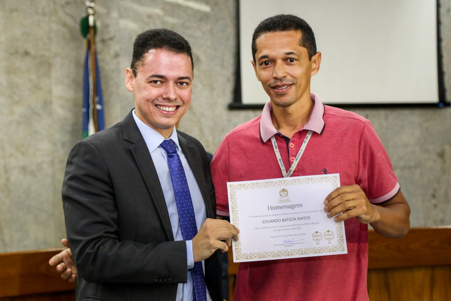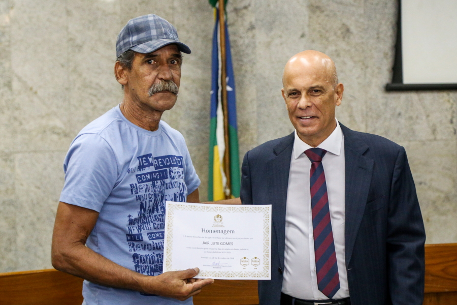 “Nós agradecemos a esses valorosos funcionários terceirizados que tanto contribuem para o funcionamento do Judiciário sergipano”, ressaltou o Presidente do Tribunal de Justiça do Estado de Sergipe, Desembargador Cezário Siqueira Neto, durante cerimônia realizada no primeiro dia do recesso forense, 20/12, em homenagem aos colaboradores destacados durante o ano de 2018.