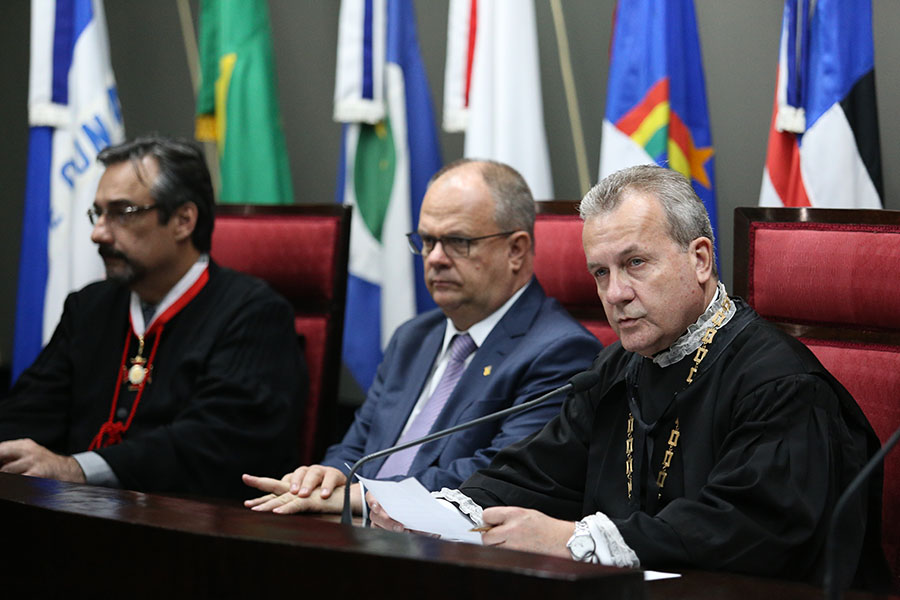 Após a leitura do juramento e assinatura do termo de compromisso de posse feito pelos novos componentes da Mesa Diretora, o Desembargador Osório iniciou seu discurso parabenizando a gestão anterior. Ele também disse que enfrentará a nova missão com “dedicação e amor”, sabendo que terá o apoio dos colegas da Mesa Diretora, dos demais Desembargadores e dos servidores do Poder Judiciário, “que formam uma família saudável e forte”.