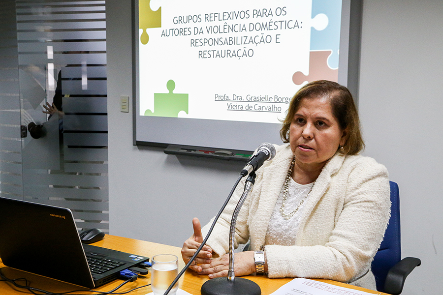 “A palestra está relacionada ao livro que publiquei em agosto do ano passado, fruto da minha tese de doutorado em Direito. Fiz um mapeamento nacional dos locais onde já existem os grupos reflexivos e de que forma podemos dialogar com a rede para tentar instalar também outros grupos reflexivos aqui em Sergipe”, explicou a professora Grasielle Borges, lembrando que a reincidência entre homens que participam dos grupos, em média, é de 0% a 2%. Já em locais onde não há grupos reflexivos fica entre 50% e 60%.