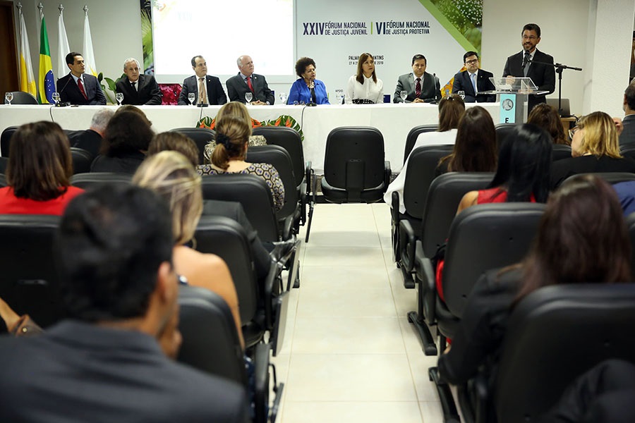 Juízes da área da Infância e Juventude de todo o país estiveram reunidos em Palmas (TO), entre os dias 27 e 29/03, para o XXIV Fórum da Justiça Juvenil (Fonajuv) e o VI Fórum da Justiça Protetiva (Fonajup). O evento que contou com a participação da Juíza Coordenadora da Infância e Juventude do TJSE, Rosa Geane Nascimento; e dos Juízes Haroldo Luiz Rigo da Silva, Presidente do Fonajup; Hercília Fonseca Brito e Juliana Nogueira Martins, foi aberto na noite da quarta-feira (27/3), pelo Presidente do Tribunal de Justiça do Tocantins (TJTO), Des. Helvécio de Brito Maia Neto.