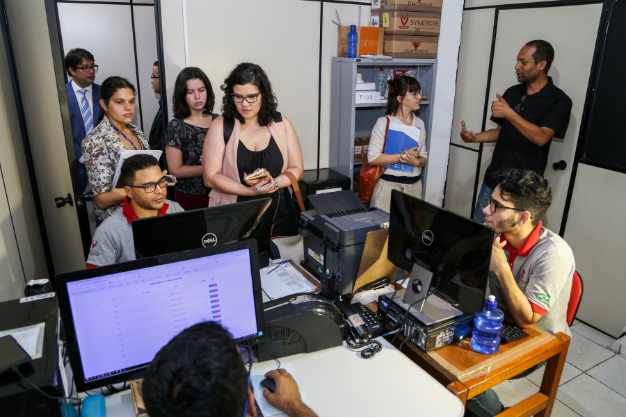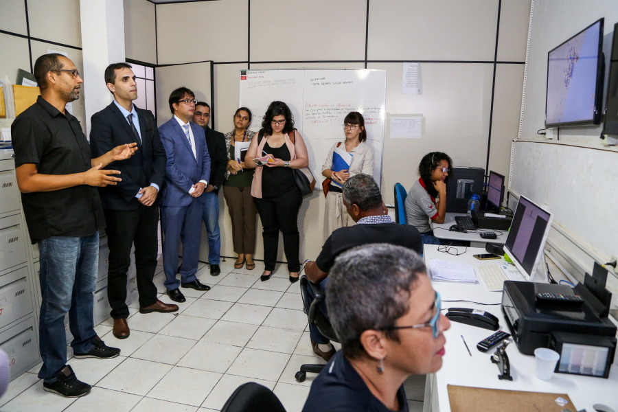 Ainda sobre as audiências de custódia, Fabiana Leite aproveitou o momento para esclarecer dúvidas sobre a lotação dos juízes, abrangência, possibilidade de interiorização e condições de trabalho de magistrados, Promotores de Justiça e Defensores Públicos. Logo após a reunião, o grupo do CNJ visitou a Central de Monitoração Eletrônica e, no início da tarde, conheceu o local onde as audiências de custódia são realizadas.
