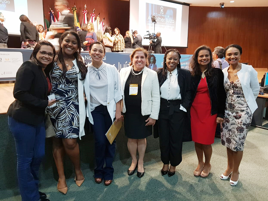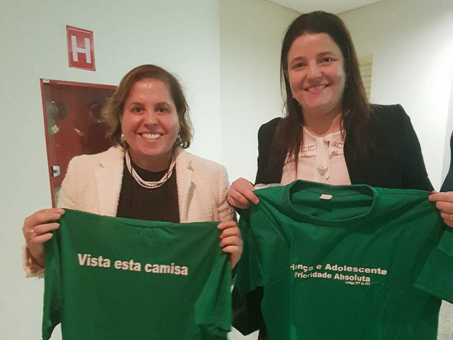 Ainda em Brasília, entre os dias 15 e 17 de maio, aconteceu o ‘1º Curso Nacional A Mulher Juíza: desafios na carreira e atuação pela igualdade de gênero’, realizado na Escola Nacional de Formação e Aperfeiçoamento de Magistrados (Enfam). Ao final do evento, a Juíza Rosa Geane Nascimento entregou a camisa da Campanha da Prioridade Absoluta à Juíza do Trabalho Flávia Pessoa, sergipana e Auxiliar do Presidente do CNJ. A Juíza do TJSE Patrícia Carvalho também participou do curso.