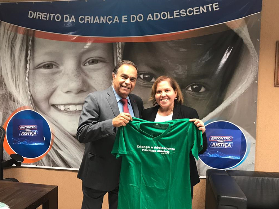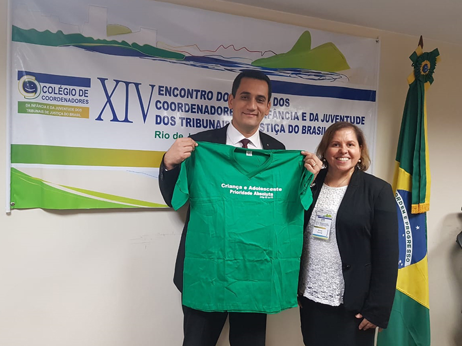 Já no Rio de Janeiro, no dia 3 de maio, aconteceu o XIV Encontro do Colégio de Coordenadores da Infância e Juventude dos Tribunais de Justiça do Brasil. Ao final do evento, a Juíza Rosa Geane Nascimento, Coordenadora da Infância e Juventude do TJSE, entregou ao Juiz Sérgio Ribeiro, Presidente do Colégio, e ao Desembargador Ciro Darlan, uma camisa da Campanha Prioridade Absoluta.