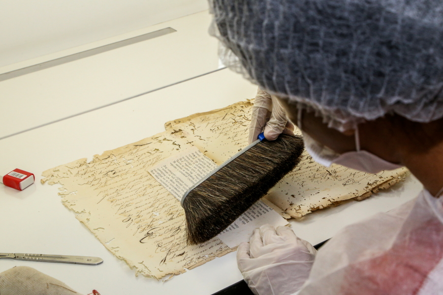 A oficina de manuseio de documentos ocorreu no Laboratório de Conservação com documentos históricos que fazem parte do acervo do Arquivo Judiciário e foi ministrada pela Técnica em Laboratório Vera Lúcia de Souza Carvalho, que possui habilitação pela Fundação Joaquim Nabuco e pela Fundação Biblioteca Nacional.