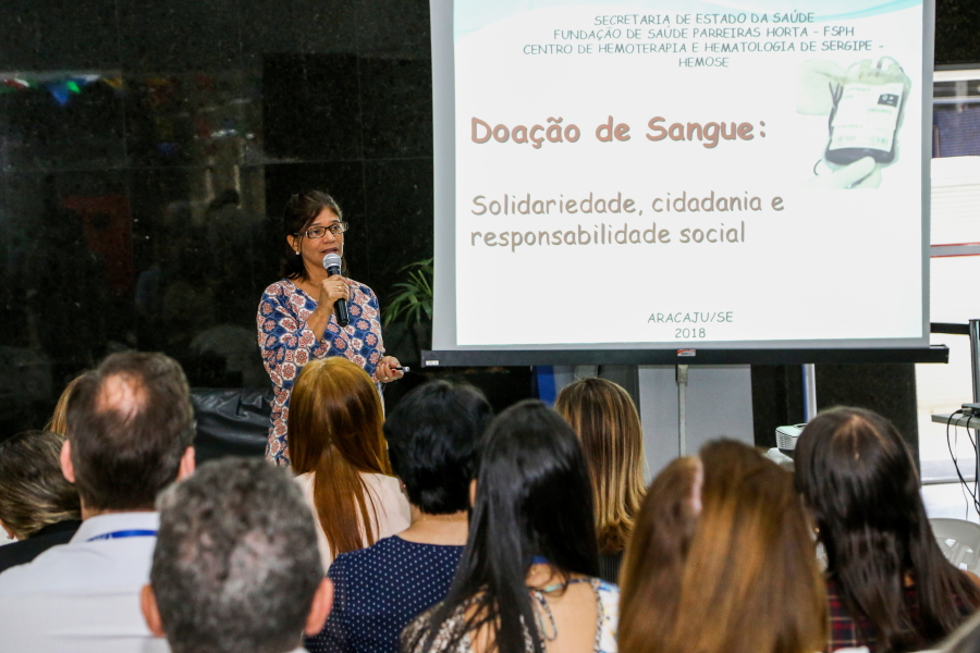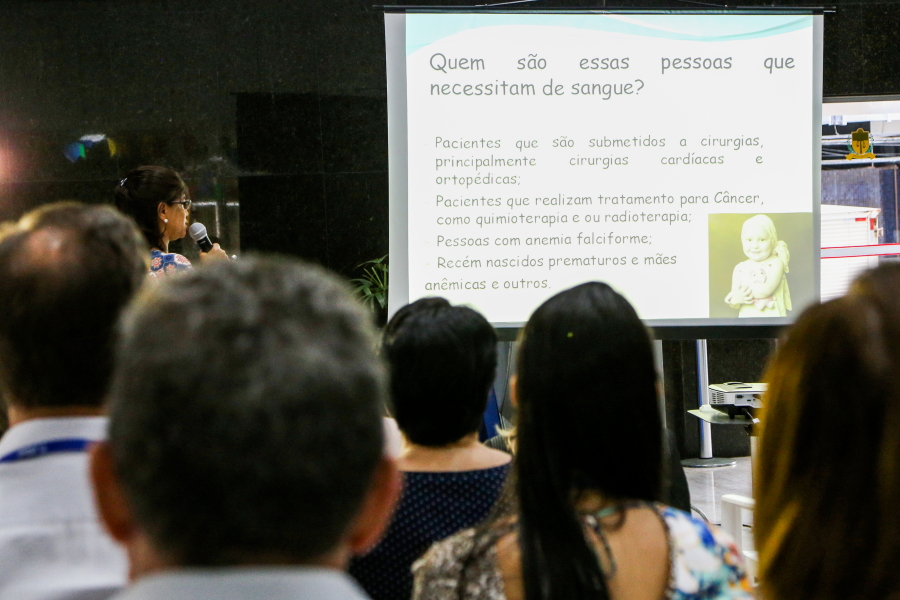 A palestra foi ministrada pela assistente social Rozeli Dantas que integra o setor de Captação de Doares de Sangue e de Medula Óssea do Hemose. Ela ressaltou a dificuldade do Hemose com a baixa no estoque, em especial no mês de junho quando ocorrem muitos acidentes em decorrência da época festiva, e também relatou a necessidade de doadores com fator Rh negativo.