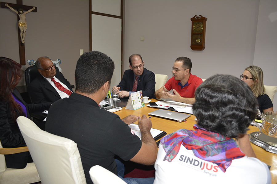 O Presidente do Tribunal de Justiça de Sergipe (TJSE), Desembargador Osório de Araújo Ramos Filho, recebeu na tarde desta quarta-feira, 10/07, a direção do Sindicato dos Trabalhadores do Poder Judiciário do Estado de Sergipe (Sindijus) para discutir as propostas de valorização dos servidores que foram analisadas na assembleia da categoria, realizada ontem, 09/07.