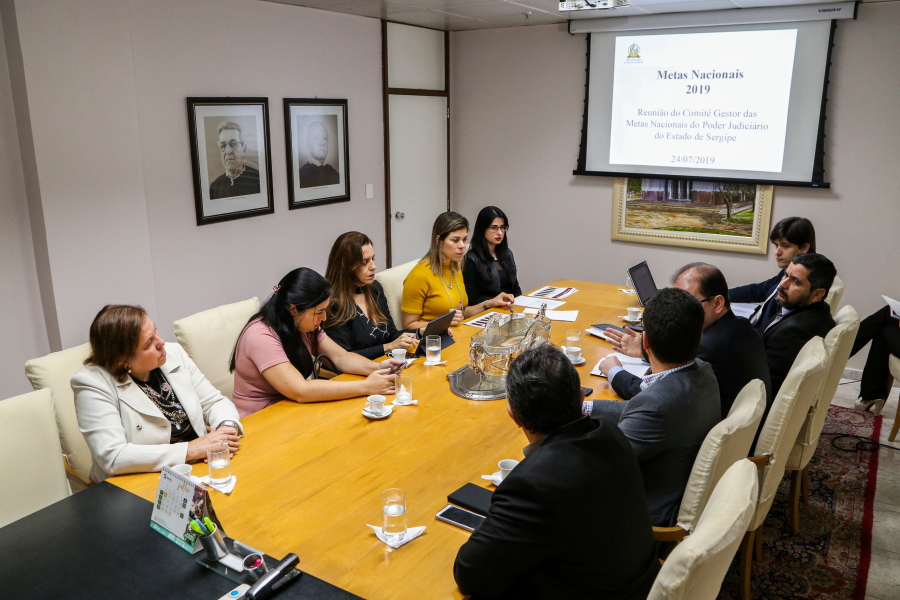 Nesta quarta-feira, dia 24/07, o Comitê Gestor das Metas do Tribunal de Justiça de Sergipe (TJSE) realizou a segunda reunião do ano de 2019 para acompanhar o andamento das Metas Nacionais definidas pelo Conselho Nacional de Justiça (CNJ).