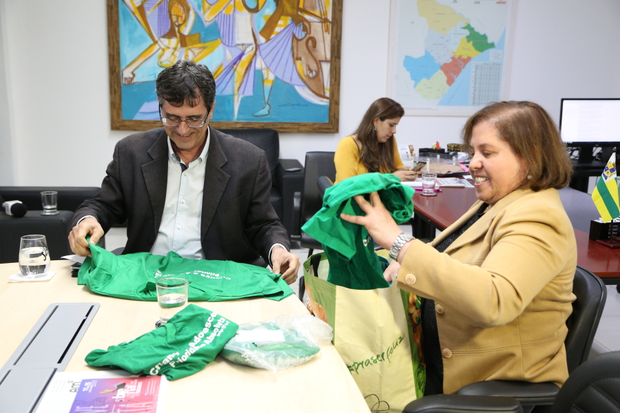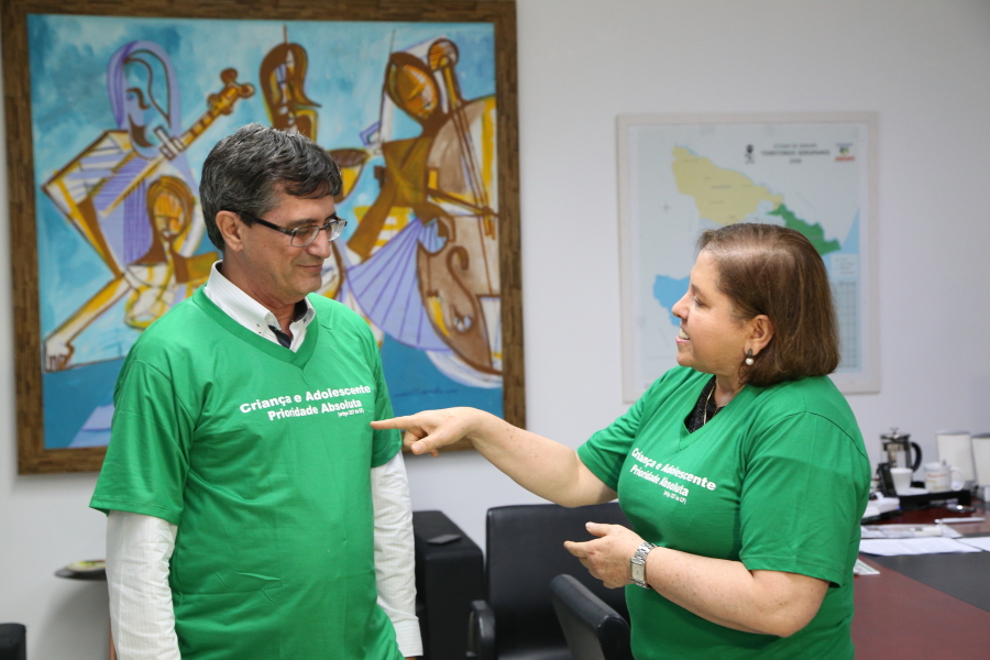 A Juíza Coordenadora também vestiu o Secretário da Educação com a camisa da Campanha da Prioridade Absoluta, agora incorporada ao projeto da CIJ com o mesmo nome.