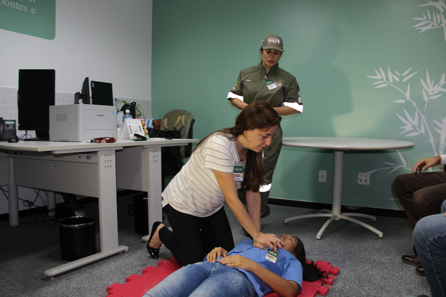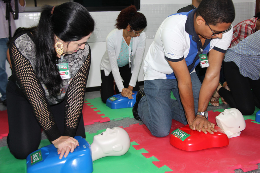 A capacitação foi promovida por profissionais da área da saúde que integram o Projeto Salve, cujo objetivo é disseminar para a população que não tem relação com a área de saúde técnicas de identificação de uma parada cardíaca e a realização de manobras de ressuscitação.