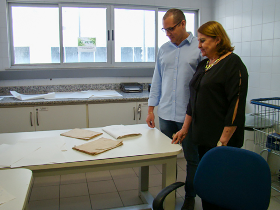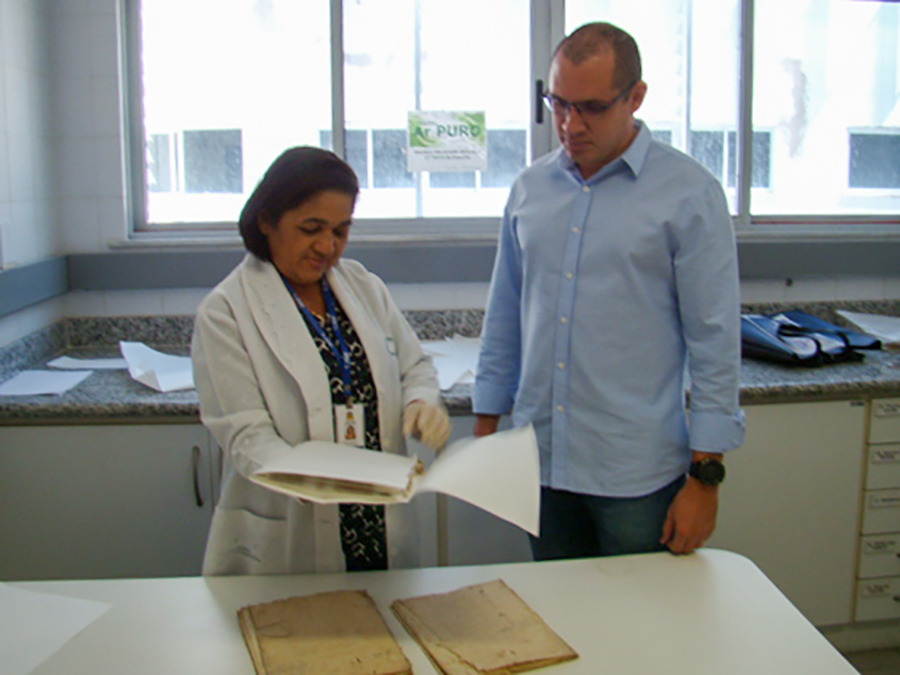 O Arquivo Judiciário recebeu a visita da Universidade da Integração Internacional da Lusofonia Afro-Brasileira (Unilab), de São Francisco do Conde, na Bahia, representada pelo professor Dr. Ígor Oliveira. No Laboratório de Conservação foram apresentados os procedimentos de higienização e conservação de documentos históricos, uma vez que, segundo o Prof. Ígor, o objetivo é adotar as práticas adequadas desenvolvidas pelo Arquivo Judiciário no manuseio da documentação pertencente à Unilab. O professor observou, além do espaço físico e instalações do Arquivo, as demonstrações das várias etapas da conservação dos documentos.