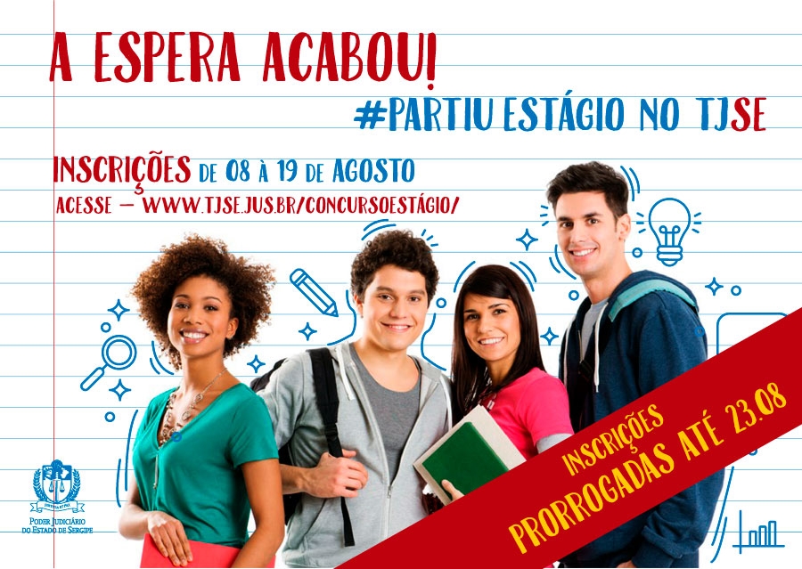 Foram prorrogadas até a próxima sexta-feira, 23/08, as inscrições para o Processo Seletivo de Estágio de Nível Médio no Tribunal de Justiça de Sergipe (TJSE). O Edital de Prorrogação foi publicado no Diário da Justiça desta segunda, 19/08. As inscrições devem ser realizadas, exclusivamente, neste link. O candidato deverá imprimir o boleto bancário e efetuar o pagamento no valor de R$ 20,00 em qualquer agência do Banese até o dia 26/08.