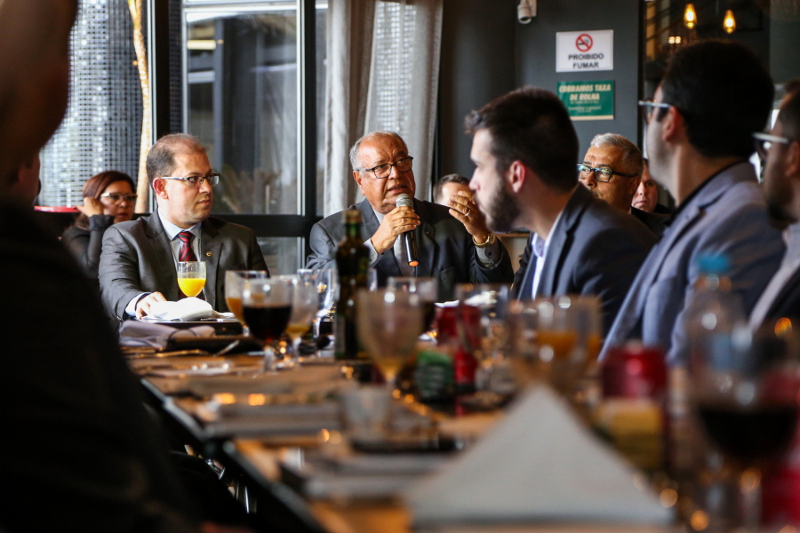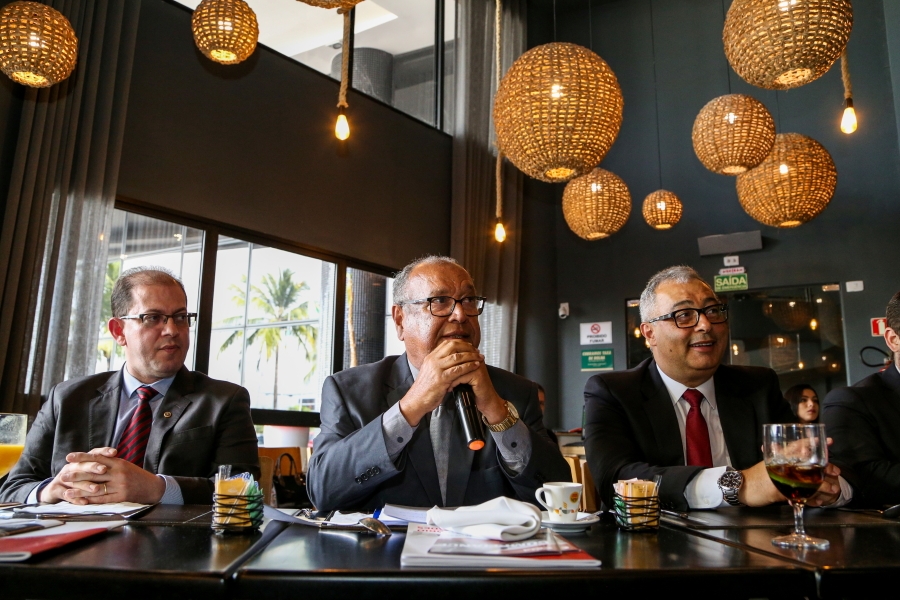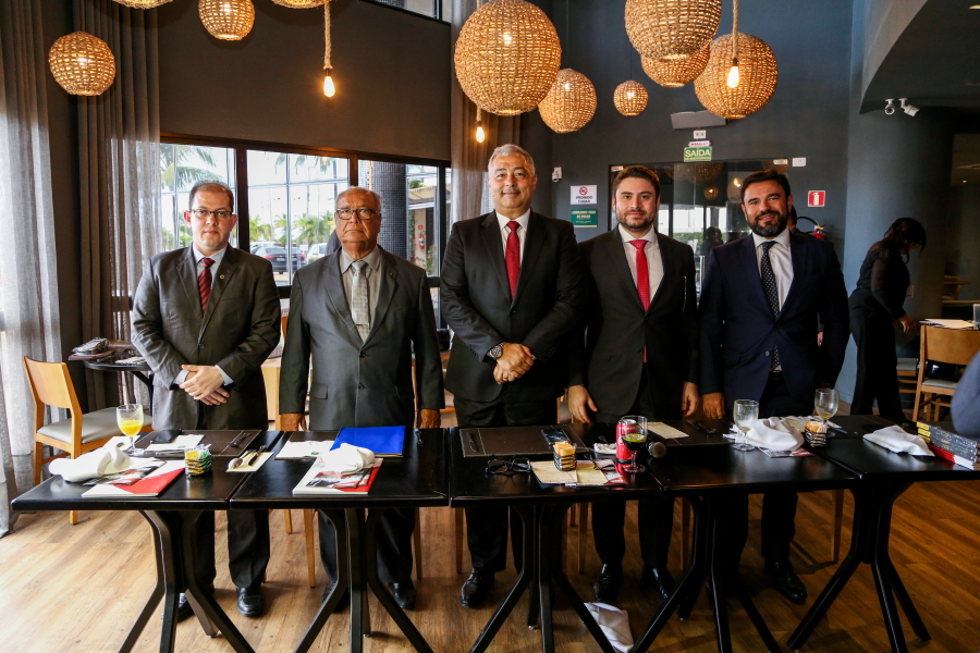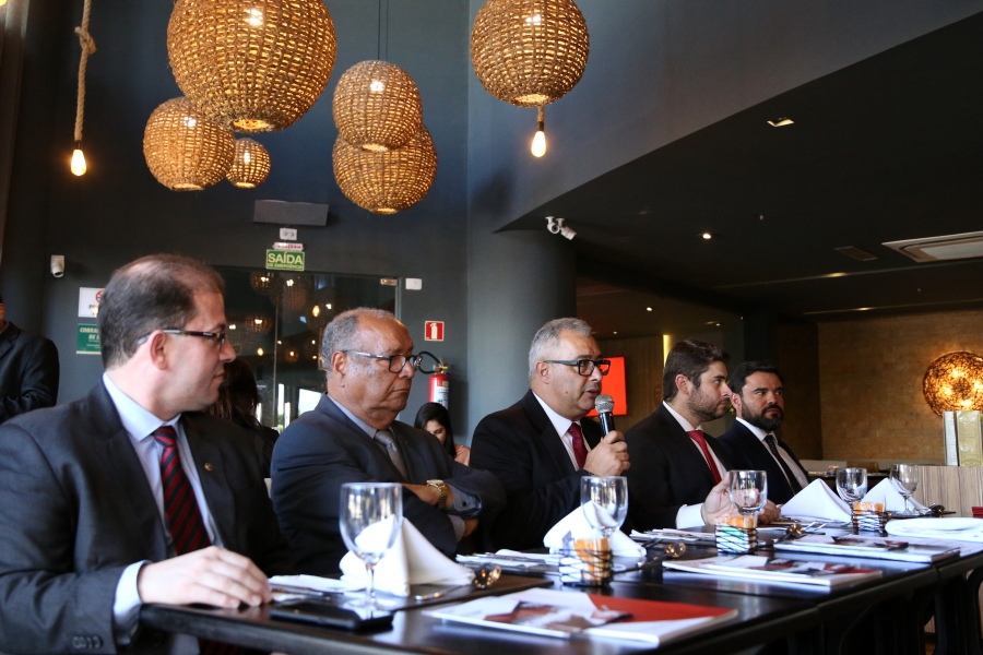 O Des. Osório de Araújo Ramos Filho, Presidente do Tribunal de Justiça de Sergipe (TJSE), acompanhado pelo Juiz Auxiliar da Presidência, Marcos de Oliveira Pinto, participou nesta quinta-feira, 29.08, da reunião-almoço do Centro de Estudos das Sociedades de Advogados (CESA), seccional Sergipe. Na oportunidade, o chefe do Judiciário sergipano palestrou para cerca de 40 advogados, sobre os ‘Desafios da Presidência: planos do TJSE para o fortalecimento da instituição’.