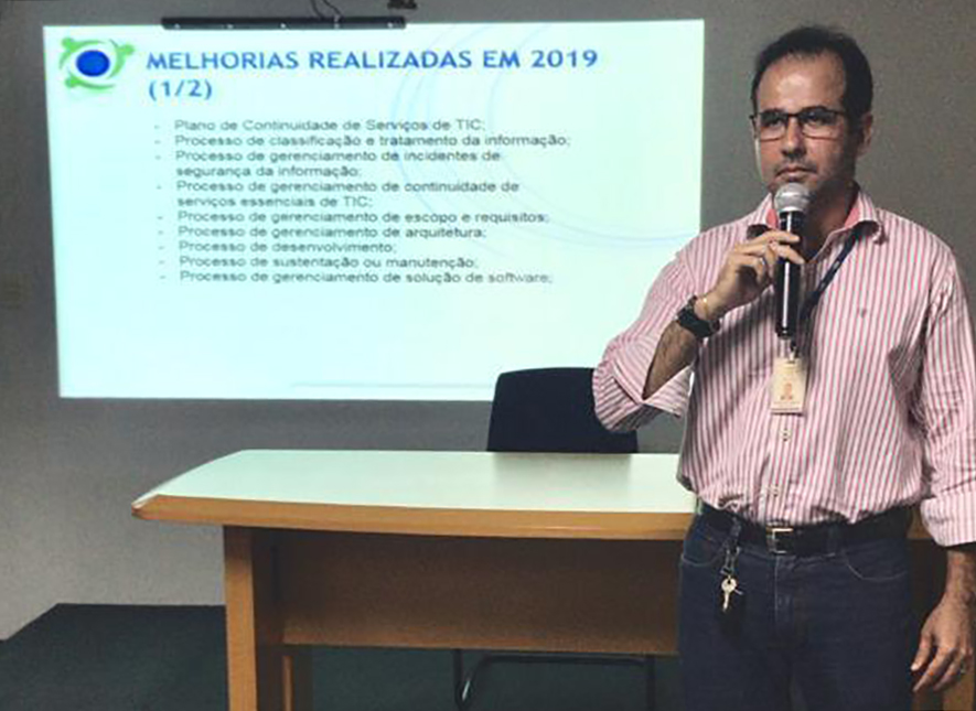 A Secretaria de Tecnologia da Informação (SETECI) realizou uma reunião com todos os seus gestores, servidores e colaboradores com o intuito de apresentar o Índice de Governança de Tecnologia da Informação e Comunicação (IGOVTIC-JUD) de 2019. Trata-se do levantamento de Governança, Gestão e Infraestrutura de Tecnologia da Informação e Comunicação do Poder Judiciário, previsto no artigo 32 da Resolução CNJ nº 211/2015 – ENTIC-JUD, e que também é utilizado para a pontuação da área de Tecnologia da Informação e Comunicação – TIC, no Prêmio CNJ de Qualidade.