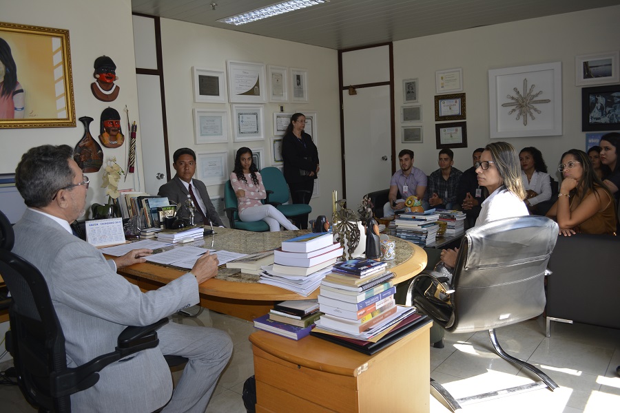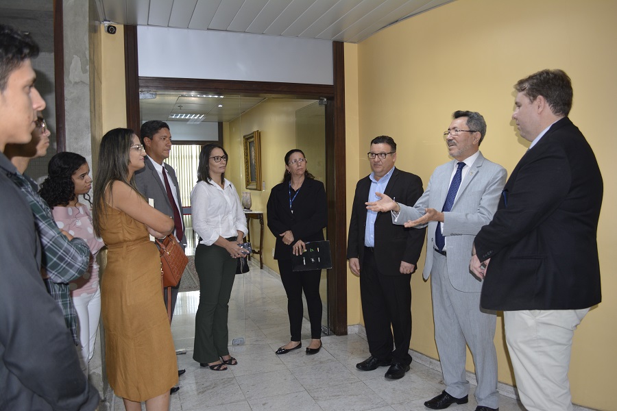 O primeiro local a ser visitado foi o gabinete do Desembargador Edson Ulisses, onde os alunos puderam ouvir um pouco sobre a estrutura do Poder Judiciário e, principalmente, como funciona o 2º grau de jurisdição. Depois, o Desembargador acompanhou a turma aos auditórios do Tribunal Pleno, Câmaras Cíveis e Criminal, onde sorteou dois livros de sua autoria, Sabedoria Popular e Reflexões Cidadãs.