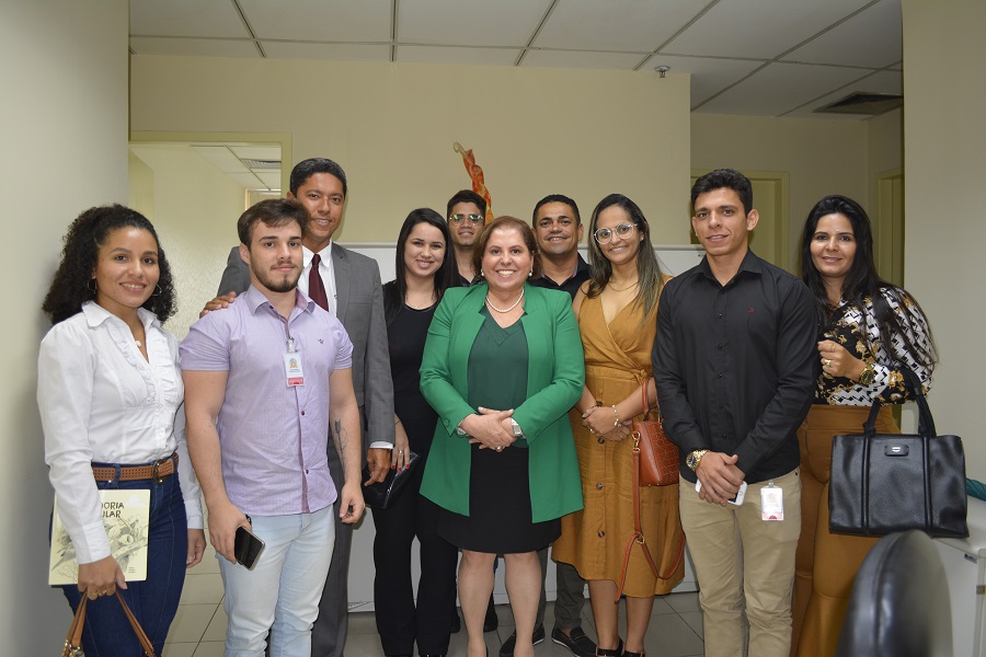 Após o gabinete do Desembargador Edson Ulisses, os alunos foram recebidos pela Juíza Rosa Geane, que falou dos projetos que as Coordenadorias desenvolvem nas áreas infantojuvenil e da mulher, a exemplo da campanha ‘Criança e Adolescente: Prioridade Absoluta’, ‘Deixa crescer o amor’ e ‘Meu alvo é a paz’. “Eu acredito muito em trabalhos que têm uma visão prática. Então, recebo vocês como muito carinho e respeito porque me sinto na sala de aula novamente”, disse a juíza, que também já foi professora.