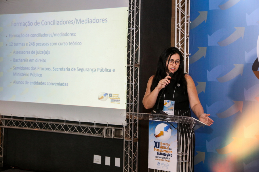 Conciliação e Justiça Restaurativa também foram temas discutidos durante o Encontro. A gestora do macrodesafio Adoção de Soluções Alternativas de Conflitos, a Juíza Maria Luiza Foz Mendonça, destacou a importância das capacitações e parcerias. “Nós focamos muito em capacitação e esse é um dos maiores fatores do nosso sucesso. Também desenvolvemos muitos processos em parceria com várias entidades, inclusive de ensino”, explicou a Juíza, lembrando que o TJSE teve, em 2018, o segundo melhor índice de conciliação, 21,1%, sendo que a média nacional foi 10,4%.