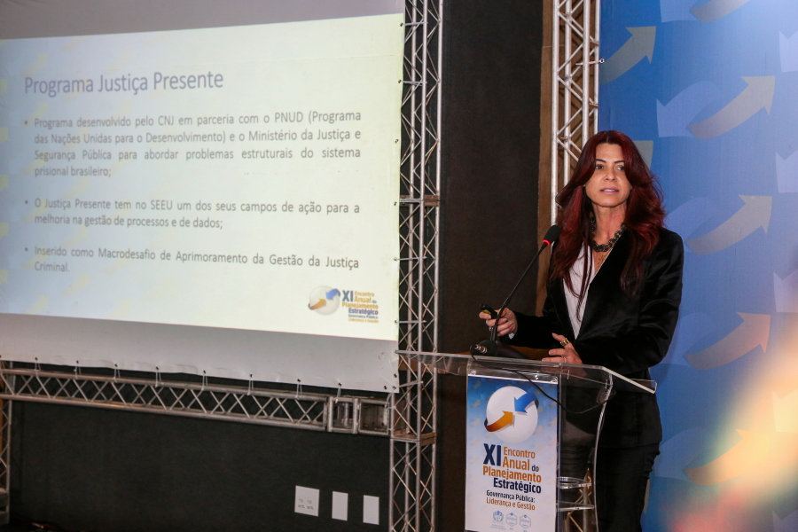 O aprimoramento da Gestão da Justiça Criminal foi o tema da apresentação da Juíza Auxiliar da Presidência do TJSE, Ana Bernadete Leite de Carvalho Andrade. “Com relação aos processos criminais, a grande novidade deste ano foi a implantação do Sistema Eletrônico de Execução Unificado, o SEEU. Nele, tramitam todos os processos de execução penal. O sistema traz diversas vantagens e tem um grande impacto social porque acusa os benefícios penais de forma automática. Ou seja, ninguém ficará preso no sistema penitenciário um dia a mais que não seja devido”, informou.
