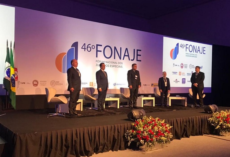 “A despeito dos notáveis avanços desse moderno sistema utilizado pelo Poder Judiciário para entregar a prestação jurisdicional de forma mais rápida e econômica, os Juizados Especiais podem, e devem, ser aprimorados. Este Fórum, cuja principal finalidade é proceder, por meio de enunciados, à uniformização das decisões dos Juizados, constitui também o ambiente apropriado para a proposição e discussão de toda e qualquer ideia que tenha como finalidade o aperfeiçoamento do sistema”, disse o Pres. do TJPR em seu discurso.