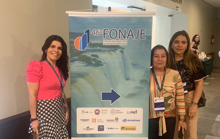 A Corregedora Geral da Justiça, Desembargadora Elvira Maria de Almeida Silva, acompanhada das Juízas Dauquíria Ferreira, Enilde Amaral, Laís Alves e de servidores do Nupemec, está participando do 46º Fórum Nacional dos Juizados Especiais (Fonaje). O evento, que tem como tema “Juizados especiais: Efetividade no acesso à justiça”, reúne mais de 300 participantes de várias regiões do país, entre magistrados, servidores e operadores do Direito. O Fórum promove debates e vota enunciados que buscam preencher lacunas e interpretar a Lei 9.099/95 – que traz disposições sobre os Juizados Especiais Criminais e Cíveis.