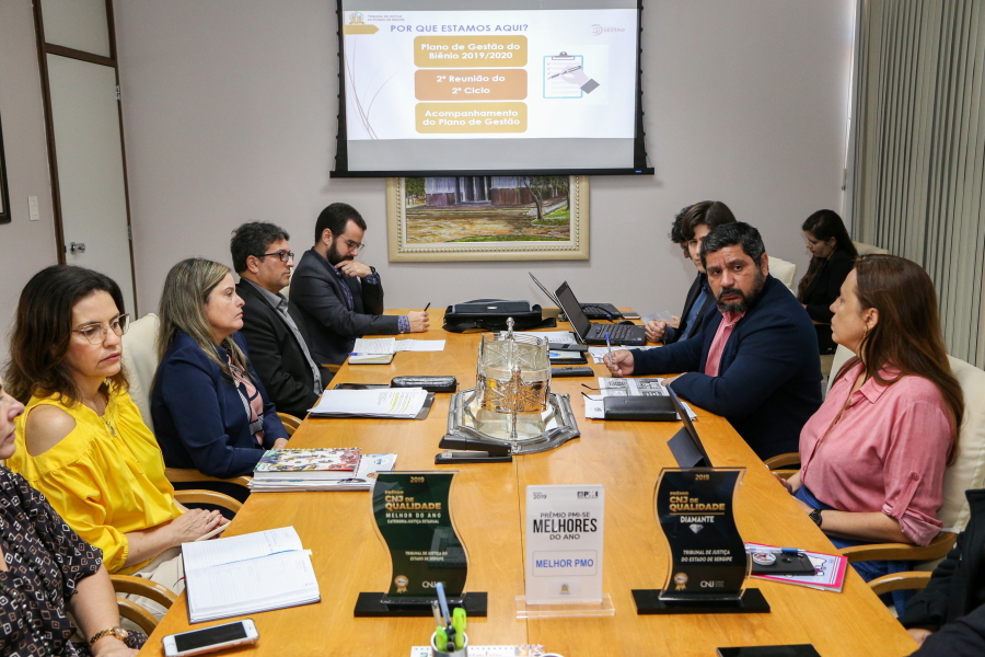 Participaram da reunião gestores das áreas de Tecnologia, Finanças, Modernização, Planejamento, Precatórios, Secretaria Judicial e Métodos Consensuais de Solução de Conflitos. Durante a reunião foi informado que o Escritório de Projetos (Project Management Office - PMO) do TJSE, responsável pelo acompanhamento do Plano de Gestão, ganhou o "Prêmio PMO Sergipano do Ano 2019". A premiação ocorreu no Congresso Sergipano de Gestão de Projetos e Liderança, organizado pelo Instituto Internacional de Gerenciamento de Projetos (PMI).