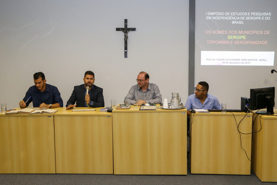 Outra exposição detalhou o significado dos nomes dos municípios de Sergipe, exposta pelo Professor Doutor Cezar Alexandre Neri Santos. “Fazemos um estudo, desde a dissertação de mestrado acerca dos nomes de municípios em Sergipe, o que significam e em quais línguas estão, o que chamamos de estudos em Toponímia. Especialmente, pensando nos 75 nomes dos municípios sergipanos, fica muito clara a presença de uma homenagem católica, à figura de Maria, especificamente, com quase 10 nomes de cidades; há também a presença de nomes de origem indígenas, notadamente, tupi e nomes de origem africana, mesmo que mínima, em comparação à origem tupi. Buscamos, nesses estudos, desvendar o que é fantasia e o que não é com relação às versões que são dadas para as origens desses nomes”, abordou o palestrante.