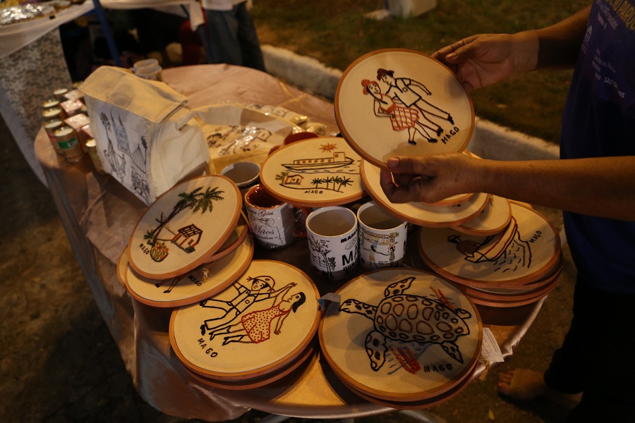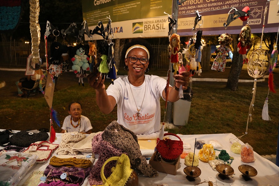 A feirinha de artesanato ‘São Criativos’, com artesãos da cidade histórica de São Cristóvão, também chamou atenção do público. Nas barraquinhas foi possível encontrar vários produtos, entre eles canecas e bastidores bordados com temas de paisagens sergipanas, confeccionados pela artista Maria Góes, de 83 anos. Já Nice Silva, trouxe peças em crochê e panos de prato com estampas natalinas. “Participar desse evento renova nosso trabalho”, confessou Nice.
