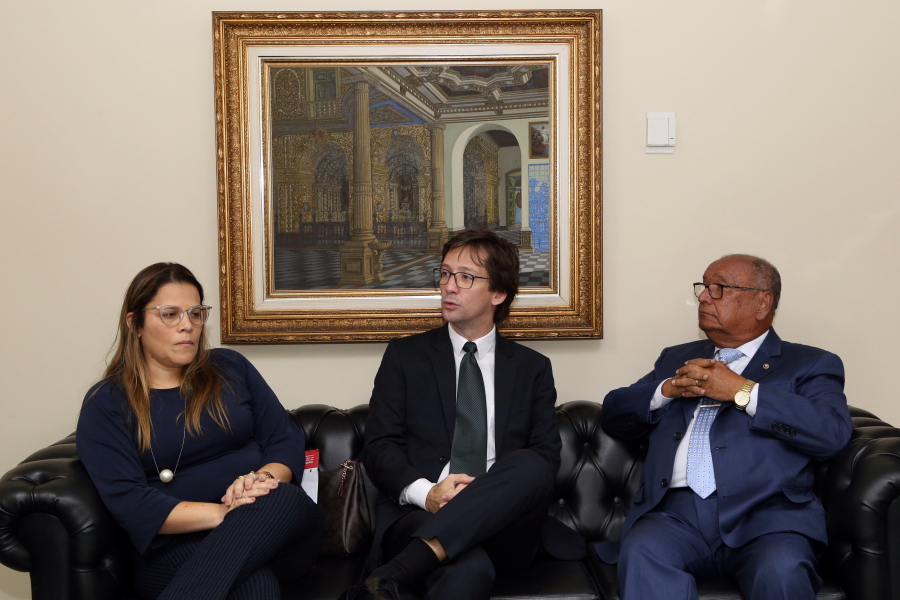O Presidente da Amase, Roberto Alcântara, a Vice-Presidente, Iracy Mangueira e o Vice-Presidente de Patrimônio e Finanças, Daniel Leite Silva, estavam acompanhados por membros do Conselho Consultivo e de Defesa das Prerrogativas da Magistratura, os Juízes José Anderson Nascimento e Henrique Gaspar de Mendonça.