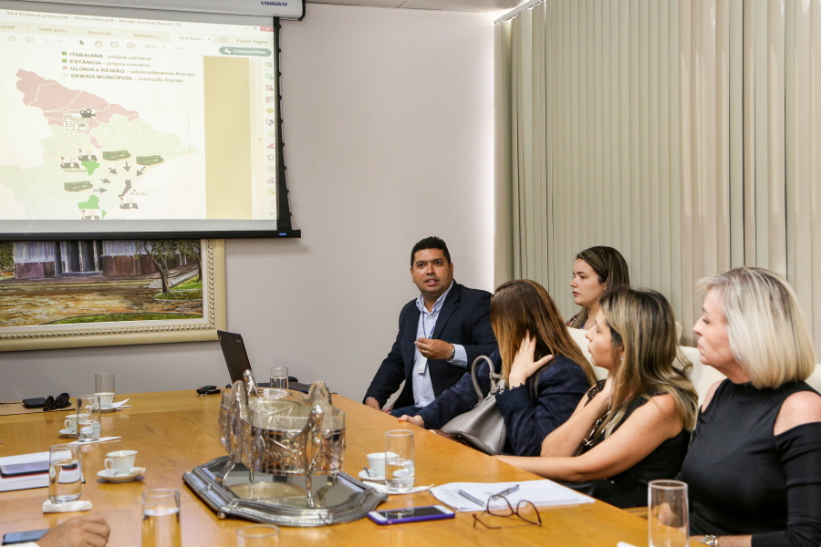 O Desembargador Diógenes Barreto, Supervisor do GMF, os Juízes Auxiliares da Presidência, Ana Bernadete Leite de Carvalho e Marcos Pinto e Juíza Corregedora Brígida Declerc Fink se encontraram com os juízes de Estância, Itabaiana, Tobias Barreto, N. Sra. da Glória, Canindé de São Francisco, Poço Redondo, Porto da Folha, Gararu, Monte Alegre, N. Sra. de Lourdes e São Miguel do Aleixo. A intenção da reunião foi comunicar e ajustar a experiência que será realizada a partir do dia 09 de março com as audiências de custódias.